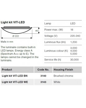 Los ventiladores para techo CasaFan permite hacer modificaciones con productos diseñados y adaptados especialmente. Se trata de un kit de Luz LED, cuya bombilla no es reemplazable, con un consumo máximo de 18W y una vida útil de  30,000h.