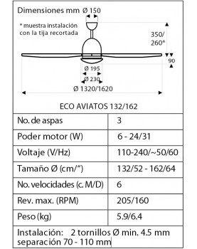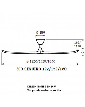 340,00 €Este producto incluye solo las aspas. DEBE COMPRAR EL MOTOR POR SEPARADO. Diámetro de las aspas: Ø 180 cm . Tamaño de la habitación: superiores a 30 m2 . Aspas de madera maciza de color madera natural.Set de 3 aspas Ø152cm MS negro para ventiladores ECO GENUINO CasaFan