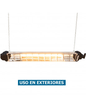 229,00 €Pensado para usar en áreas al aire libre. Apto para terrazas, patios, balcones, etc. Clima independiente: sin pérdida de calor por movimiento de aire. Incluye cadenas de suspensión, para poder colgar el calefactor del techo....Calefactor halógeno por infrarrojo Mo-El 767N FIORE 1800N / 9 m2 / IP65