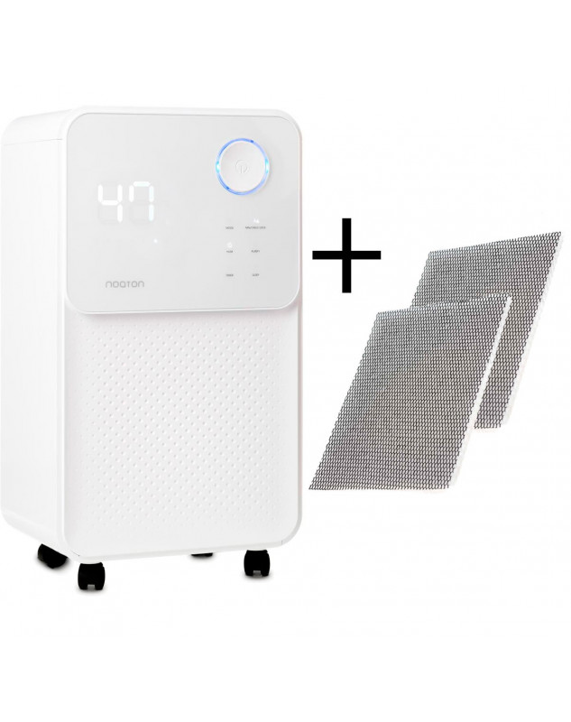 El deshumidificador y purificador de aire multifuncional Noaton DF 4114 se encuentra entre los más nuevos del mercado europeo. Se trata de un dispositivo discreto, fácilmente transportable gracias a sus ruedas y con una aparienca blanca con acabados redondeados.