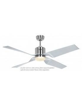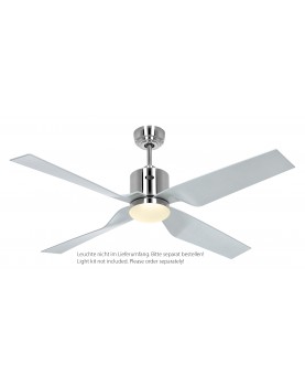 El motor de bajo consumo, de color cromo cepillado, es muy silencioso ya que no produce sonido. Incluye de serie un cómodo mando a distancia, con el cúal se puede elegir entre cualquiera de sus 6 velocidades, así como enceder/apagar la luz, e incluso modo inverso, que ayuda con el calentamiento de la habitación en invierno (enviando el aire caliente acumulado en la parte superior del la habitación hacia abajo). Incluye también soporte a pared para poder dejar el mando sujeto en la pared.