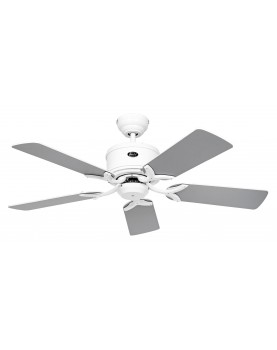 El ventilador de techo 510381 Eco Elements tiene un diámetro de 103 cm. Para su accionamiento y cambio de velocidades incluye un control remoto, esté permite también controlar el encendido y apagado de la luz, en los modelos con lámpara. Tiene 5 aspas reversibles de blanco o gris claro. Estos ventiladores para techo son adecuados para ambientes u oficinas con un tamaño desde 12 m2 y de una altura de 2,4 m - 2,8 m. Se puede instalar sin barras quedando a solo 22,5 cm del techo. El ventilador doméstico tiene 6 velocidades: max. 209 r.p.m. a una potencia que va de 1,5 W a 25 W. El motor DC de corriente continua hace que estos ventiladores de techo generen un ahorro en el consumo eléctrico, sean más livianos, ultra silenciosos y tengan mayor vida útil. De manera opcional se puede solicitar la instalación en fábrica de un kit de luz (puedes ver los kits disponibles en el catálogo). La tecnología inversa permite la refrigeración en verano y ayuda a el calentamiento de la habitación en invierno (enviando el aire caliente acumulado en la parte superior del la habitación hacia abajo). El ventilador para techo 510381 Eco Elements de CasaFan tiene la función "slow motion" que genera una suave brisa por la noche sin molestar mientras se descansa.