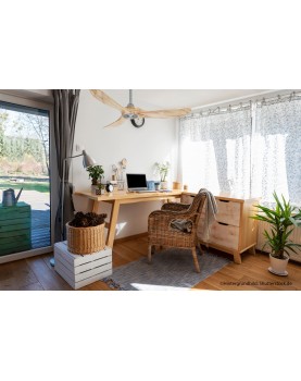 Aspas fabricadas en una sola pieza de madera maciza de color natural. Brindando un aspecto robusto y a su vez, decorativo.