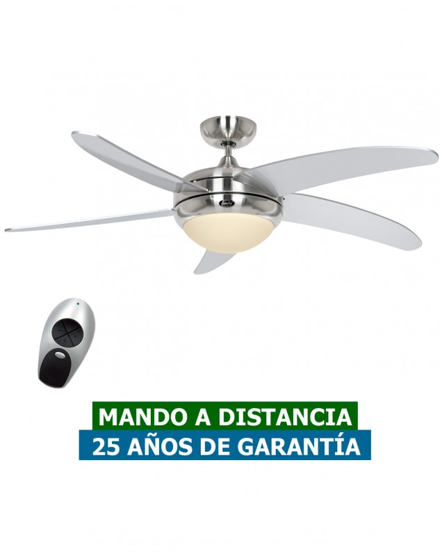 Se trata de un ventilador con una potente luz. Incluye de serie 2 bombillas E27 de 40W, aunque se pueden cambiar y poner otro tipo de bombillas (Desde la clase A++ hasta la E).