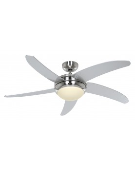 El ventilador para el techo ELICA BN-WE dispone de una apariencia moderna y dinámica, a la vez que poderosa. Tiene 5 aspas de color arce, que conforman un diámentro de 132cm. Está pensado para espacios de 17,6 m² a 20 m² aproximadamente, y con una altura entre los 2,4m y 2,8m. Su motor es de cromo cepillado y muy silencioso. De hecho lo único que se llega a escuchar es el sonido del viento, y no del motor. A su mayor velocidad llega hasta las 195r.p.m, consumiendo hasta un máximo de 68W. Por otro lado, el consumo mínimo es de sólo 9W.