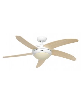 El ventilador para el techo ELICA WE-AH dispone de una apariencia moderna y dinámica, a la vez que poderosa. Tiene 5 aspas de color arce, que conforman un diámentro de 132cm. Está pensado para espacios de 17,6 m² a 20 m² aproximadamente, y con una altura entre los 2,4m y 2,8m. Su motor es de color blanco y muy silencioso. De hecho lo único que se llega a escuchar es el sonido del viento, y no del motor. A su mayor velocidad llega hasta las 195r.p.m, consumiendo hasta un máximo de 68W. Por otro lado, el consumo mínimo es de sólo 9W.