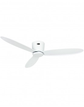 El ventilador de techo Eco Plano es un ventilador de techo con un diámetro de 112 cm (hasta 15m2) . También disponible con un diámetro de 132 cm (hasta 22m2). Tiene 4 aspas de color blanco que pueden montarse 2, 3 ó 4 de las palas. Estos ventiladores de techo son adecuados para habitaciones de una altura de 2,4 m - 2,8 m. Se instala sin barras quedando a solo 18 cm del techo. Incluye mando a distancia para su accionamiento y cambio de las 6 velocidades a un max. También incluye WIFI con el que poder controlarlo a través de la app 205 r.p.m. y una potencia que va de 3 W a 24 W. El motor DC de corriente continua hace que estos ventiladores de techo generen un ahorro en el consumo eléctrico, sean más livianos, ultra silenciosos y tengan mayor vida útil. Se puede adquirir por separado una lámpara.