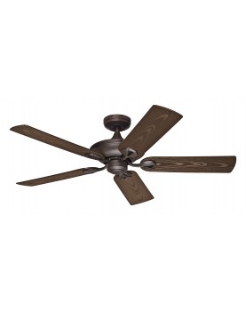 El ventilador de techo para exteriores Hunter Maribel 50555 se distingue por tener una resistencia al agua IPX3 dándole la posibilidad de una instalación en exteriores. El certificado IP44 significa que no debe entrar el agua rociada, en un ángulo de hasta 60 grados, con una cantidad promedio de 10 litros por minuto y durante más de cinco minutos. Tiene un tamaño de 132 cm de diámetro. Sus 5 palas en color nogal de plástico ABS y su cuerpo en aluminio inoxidable lo hacen ideal para exteriores. Diseñado para ambientes con un tamaño de 24 m2 y una altura de 2,4 m - 2,8 m. Montado, sus aspas quedan a solo 31,2 cm del techo. Este ventilador para techo se le puede incluir una luz apta para exteriores (kit de luz Hunter compatibles para exterior). Se activa mediante su cadena, pudiendo controlar la luz y sus tres velocidades con un max. de 171 r.p.m., con una potencia de 15 W a 63 W, con las que conseguiremos un confort ambiental. La función inversa crea una brisa que nos refresca en verano y de ser instalado en interior, ayuda a mantener caliente los ambientes en invierno (empujando el aire caliente que se acumula en el techo hacia abajo).