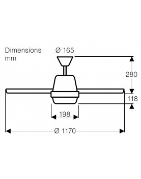 Su controla mediante cadenas a través del cuáles puedes encender y/o apagarlo, cambiar de velocidades, así como controlar la luz. La lámpara incluída cuenta con un diámetro de 20 cm para albergar dos bombillas de rosca E14 (máx. 14 W). Dispone de 3 velocidades, que llegan a un máx. de 189 r.p.m., y con una potencia entre los 18 W y 62 W.