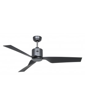 El ECO DYNAMIX es un modelo de ventilador para techo vanguardista y muy moderno, con aspas curvadas de color gris basalto, dan al ventilador un aspecto de movimiento y dinamismo. Con un diámetro de 132cm, está pensado para estancias entre los 12m2 y 25m2, con una altura entre los 2,4m y 2,8m. El producto viene con 4 aspas, pero se pueden poner de 2 a 4 según se prefiera.