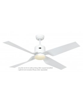 El ECO DYNAMIX es un modelo de ventilador para techo vanguardista y muy moderno, con aspas blancas curvadas, que dan al ventilador un aspecto de movimiento y dinamismo. Con un diámetro de 132cm, está pensado para estancias entre los 12m2 y 25m2, con una altura entre los 2,4m y 2,8m. El producto viene con 4 aspas, pero se pueden poner de 2 a 4 según se prefiera.