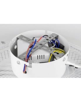 El ventilador con luz Noaton POLARIS es un práctico ayudante no sólo en los calurosos días de verano. Cuenta con 5 palas (material ABS) accionable en 3 velocidades, una luz controlable (con un flujo luminoso de 100 lm/W) y una función de temporizador. Todo ello en un aparato que no sólo es económico (la potencia máxima del motor es de 26 W), sino que también es ligero y, por tanto, puede colocarse prácticamente en cualquier lugar (incluso en la pared, es decir, en un ángulo de 90°). El color del ventilador es blanco y encaja prácticamente en cualquier lugar, ya sea en un interior laboral o residencial. Además, las propias aspas están protegidas por un robusto cuerpo de ventilador, evitando así cualquier riesgo de lesión. El aparato se suministra con un mando a distancia.