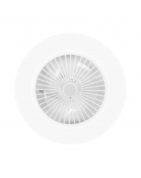 El ventilador con luz Noaton CALLISTO es un práctico ayudante no sólo en los calurosos días de verano. Cuenta con 5 palas (material ABS) accionables en 3 velocidades, una luz controlable (con un flujo luminoso de 100 lm/W) y una función de temporizador. Todo ello en un aparato que no sólo es económico (la potencia máxima del motor es de 26 W), sino que también es ligero y, por tanto, puede colocarse prácticamente en cualquier lugar (incluso en la pared, es decir, en un ángulo de 90°). El color del ventilador es blanco y encaja prácticamente en cualquier lugar, ya sea en un interior laboral o residencial. Además, las propias aspas están protegidas por un robusto cuerpo de ventilador, evitando así cualquier riesgo de lesión. El aparato se suministra con un mando a distancia.