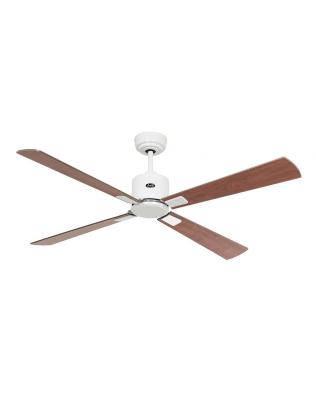 El ventilador de techo Eco Neo III tiene un diámetro de 132 cm, se acciona y cambia sus 6 velocidades por medio del mando a distancia incluido. Este producto incluye 4 aspas, pero permite la instalación de 2, 3 ó 4 aspas , son adecuados para habitaciones con un tamaño superior a 12 m2 (hasta 25m2) y de una altura de 2,4 m - 2,8 m. El ventilador doméstico tiene 6 velocidades: max. 220 r.p.m. a una potencia que va de 3 W a 30 W. Incluye velocidad "slow motion" súper silenciosa. La tecnología inversa permite la refrigeración en verano y a mantener el calor más distribuido de la habitación en invierno (enviando el aire caliente acumulado en la parte superior del la habitación hacia abajo). El ventilador para techo 943212 ECO NEO II 103 de CasaFan puede montarse en un techo inclinado con un ángulo de hasta 16°.