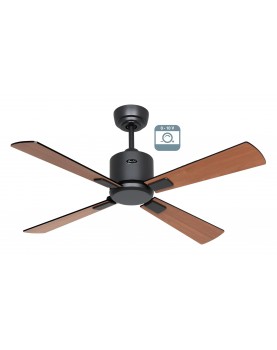 El ventilador de techo 949303W Eco Neo III 152 tiene un diámetro de 152 cm, se acciona y cambia sus 6 velocidades por medio del mando a distancia incluido. Este producto incluye 4 aspas, pero permite la instalación de 2, 3 ó 4 aspas , son adecuados para habitaciones con un tamaño inferior a 35 m2 y de una altura de 2,4 m - 2,8 m. El ventilador doméstico tiene 6 velocidades: max. 150 r.p.m. a una potencia que va de 2,5 W a 27 W. Incluye velocidad "slow motion" super silenciosa. La tecnología inversa permite la refrigeración en verano y a mantener el calor más distribuido de la habitación en invierno (enviando el aire caliente acumulado en la parte superior del la habitación hacia abajo). El ventilador para techo 949303W con WIFI ECO NEO II 152 de CasaFan puede montarse en un techo inclinado con un ángulo de hasta 23°. Ventilador de techo con wifi.