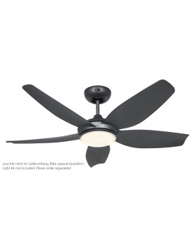 El ventilador de techo 948333W Eco Neo III 152 tiene un diámetro de 152 cm, se acciona y cambia sus 6 velocidades por medio del mando a distancia incluido. Este producto incluye 4 aspas, pero permite la instalación de 2, 3 ó 4 aspas , son adecuados para habitaciones con un tamaño inferior a 35 m2 y de una altura de 2,4 m - 2,8 m. El ventilador doméstico tiene 6 velocidades: max. 150 r.p.m. a una potencia que va de 2,5 W a 27 W. Incluye velocidad "slow motion" super silenciosa. La tecnología inversa permite la refrigeración en verano y a mantener el calor más distribuido de la habitación en invierno (enviando el aire caliente acumulado en la parte superior del la habitación hacia abajo). El ventilador para techo 948333W con WIFI ECO NEO II 152 de CasaFan puede montarse en un techo inclinado con un ángulo de hasta 23°. Ventilador de techo con wifi.