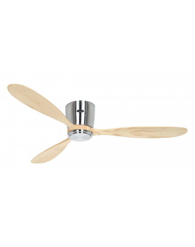 El ventilador de techo 313287 Eco Plano es un ventilador de techo con un diámetro de 132 cm. Tiene 4 aspas de color blanco que pueden montarse 2, 3 ó 4 de las palas. Estos ventiladores de techo son adecuados para habitaciones con un tamaño de 17,6 m2 y de una altura de 2,4 m - 2,8 m. Se instala sin barras quedando a solo 16 cm del techo. Incluye mando a distancia para su accionamiento y cambio de las 6 velocidades a un max. 190 r.p.m. y una potencia que va de 3 W a 29 W. El motor DC de corriente continua hace que estos ventiladores de techo generen un ahorro en el consumo eléctrico, sean más livianos, ultra silenciosos y tengan mayor vida útil. Se puede adquirir por separado una lámpara LED (Kit de Luz EP-LED de 1.200 lumens y hasta 30.00h de vida útil). La tecnología inversa permite la refrigeración en verano y el calentamiento de la habitación en invierno (enviando el aire caliente acumulado en la parte superior del la habitación hacia abajo). El ventilador para techo 313287 Eco Plano de CasaFan tiene la función "slow motion" que genera una suave brisa por la noche sin molestar mientras se descansa.